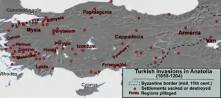 In the east, however, Manuel's achievements are more ambiguous. He suffered a major defeat at the Battle of Myriokephalon in 1176 against the Turks. Manuel was marching against Konya, the Turkish capital, when his forces were ambushed; the ensuing defeat has since entered the popular imagination as a legendary disaster. Exaggerated accounts of the battle often describe the destruction of the entire Byzantine army, and with it the end of Byzantine power and influence. However, the modern consensus among Byzantine historians is that, while the Battle of Myriokephalon was a serious humiliation for the emperor, it was certainly not a catastrophe. Nor was it in any way equivalent to the Battle of Manzikert over a century earlier. In fact, much of the emperor's army emerged from the battle without serious damage.[7] Units involved in the battle are well documented as campaigning in Asia Minor the following year.[4] The imperial frontier remained unmoved for the remainder of Manuel's reign, a clear indication that the Turks were unable to gain any advantage from their victory.[4] In 1177, the Byzantines inflicted a major defeat on a large Turkish force at Hyelion and Leimocheir in the Meander valley.[7]