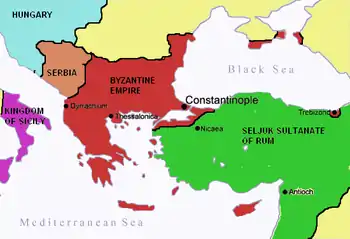 ![]() The Byzantine Empire during the reign of Manuel I Komnenos, ca. 1170 | |||||||||