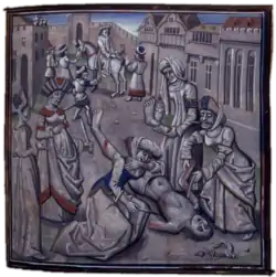 The people, who felt the severity of his laws, at the same time acknowledged their justice, and found themselves protected from the rapacity of their superiors.[24] Andronikos's energetic efforts to rein in the oppressive tax collectors and officials of the empire did much to alleviate the lot of the peasantry. However, his efforts to check the power of the nobility were considerably more problematic. The aristocrats were infuriated with him, and to make matters worse, Andronikos seems to have become increasingly deranged; executions and violence became increasingly common, and his reign turned into a reign of terror.[25] Andronikos seemed almost to seek the extermination of the aristocracy as a whole. The struggle against the aristocracy turned into wholesale slaughter, as the emperor resorted to ever more ruthless measures to shore up his regime.[23]