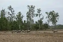 The park fauna included the Javan rhinoceros, and was one of only two populations in the world, until poachers shot and killed the last rhino in Cát Loc in 2010. There are also records of banteng and kouprey, but the latter may now be globally extinct, and wild Asian water buffalo no longer occur in Cat Tien.[12] Some accounts also list Indochinese tigers, leopards, clouded leopards and dholes; however, a recent series of surveys did not confirm this.