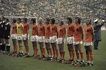 The traditional color of Cobreloa is orange, according to president, José Gorrini, the color of the club was selected due to give tribute to Netherlands National Football Team, in the 70's this selection was very popular by players like Johan Cruyff. Also, by commercial reasons this color was selected due obtain travel discounts in the national airline, Ladeco (Línea aérea del Cobre), whose corporative color was orange.[16]
