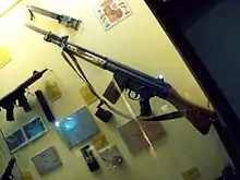 The Model As were the developmental prototypes.[3] These models were unusual as they fired from the closed bolt in semi-automatic and from the open bolt in full-auto mode.[1] Later production models fire from only the closed bolt. The Model A's are easily identified by the position of rear sight and bi-pod folded back to form fore-stock.[1] In 1954, the rifle saw limited introduction in the Spanish Army.[10] They used the 7.92x41mm CETME cartridge.[2]