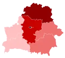 On 2 April, the Ministry of Health of Belarus reported a total of 304 confirmed cases of COVID-19, including 254 active cases, 46 recoveries and 4 deaths. According to the report, 11 patents required assisted ventilation and 9,299 people remained under medical observation as first- and second-level contacts.[32] On 3 April, during a briefing of Ministry of Health officials for the press, a total of 351 confirmed cases were reported, including 190 in Minsk, 89 in Vitebsk Region, 50 in Minsk Region, 13 in Gomel Region, 6 in Grodno Region, 2 in Mogilev Region and 1 in Brest Region. According to the officials, the majority of the COVID-19 patients were in 25- to 64-years-old range.[33] On 4 April, a total of 440 confirmed cases were reported, including 41 recoveries and 5 deaths. According to the media, the declining number of recoveries was due to changes in the counting methodology used by the officials: prior to 30 March, both discharged and "preparing to be discharged" patients had been reported as recovered; after 30 March, only the discharged patients were counted as recovered.[34] On 5 April, a total of 562 confirmed cases were reported, including 52 recoveries and 8 deaths.[35][36] On 6 April, a total of 700 confirmed cases were reported, including 53 recoveries and 13 deaths. As of 6 April, more than 40,000 COVID-19 tests had been conducted in Belarus.[37] On 7 April, a total of 861 confirmed cases were reported, including 54 recoveries and 13 deaths. Also, an update on epidemiological situation in the regions was issued by the Ministry of Health: as of 7 April, there were 497 hospitalized COVID-19 patients in Minsk, 91 in Minsk Region, 143 in Vitebsk Region, 32 in Gomel Region, 18 in Mogilev Region, 10 in Grodno Region and 3 in Brest Region. Vitebsk Region and Minsk were leading the deaths statistics with 5 death cases registered in each, as well as the recoveries statistics with 27 and 25 recoveries, respectively.[38] 31 COVID-19 patients required assisted ventilation as of date.[39] On 8 April, a total of 1,066 confirmed cases were reported, including 77 recoveries and 13 deaths. 33 COVID-19 patients required assisted ventilation to date. An update on regional statistics was issued, as well: 601 confirmed cases, 45 recoveries and 5 deaths in Minsk, 200/30/5 in Vitebsk Region, 104/1/3 in Minsk Region, 32/0/1 in Gomel Region, 25/0/0 in Mogilev Region, 11/0/0 in Grodno Region, 3/0/0 in Brest Region. More than 46,000 COVID-19 tests had been conducted in Belarus since 23 January.[40] On 9 April, a total of 1,486 confirmed cases were reported, including 139 recoveries and 16 deaths. 1,331 patients remained in hospitals to date (55 required assisted ventilation); more than 49,000 COVID-19 test had been conducted in Belarus since 23 January. Regional statistics was updated (confirmed cases/recoveries/deaths): 699/102/6 in Minsk, 364/35/7 in Vitebsk Region, 153/1/3 in Minsk Region, 35/1/0 in Gomel Region, 35/0/0 in Mogilev Region, 28/0/0 in Grodno Region, 17/0/0 in Brest Region.[41] On 10 April, a total of 1,981 confirmed cases were reported, including 169 recoveries and 19 deaths. 1,793 patients remained in hospitals to date with 72 requiring assisted ventilation. Death cases of medical workers had also been registered to date, however, the precise number of such, as well as the number of infected medical workers, were not given.[42] On 11 April, a total of 2,226 confirmed cases were reported, including 172 recoveries and 23 deaths. 2,031 patients remained in hospitals to date with 52 requiring assisted ventilation.[43] According to the official data, as of 11 April, 301 medical workers contracted the disease.[44] On 12 April, a total of 2,578 confirmed cases were reported, including 203 recoveries and 26 deaths; 50 patients required assisted ventilation. More than 64,000 COVID-19 test had been conducted to date.[45] On 13 April, a total of 2,919 confirmed cases were reported, including 203 recoveries and 29 deaths; 55 patients required assisted ventilation. More than 68,000 COVID-19 test had been conducted to date.[46] On 14 April, a total of 3,281 confirmed cases were reported, including 33 deaths; the number of recoveries was not given. As of date, 2,444 COVID-19 patients remained in hospitals, with 57 requiring assisted ventilation. More than 71,000 COVID-19 tests had been conducted in Belarus.[47] According to the official update on regional statistics, as of 14 April, 1,691 COVID-19 cases had been registered in Minsk, 848 in Vitebsk Region, 359 in Minsk Region, 151 in Mogilev Region, 106 in Gomel Region, 73 in Brest Region and 53 in Grodno Region.[48] On 15 April, a total of 3,728 confirmed cases were reported, including 36 deaths; the number of recoveries was not given. 68 patients required assisted ventilation. More than 76,000 COVID-19 tests had been conducted in Belarus to date.[49] On 16 April, a total of 4,204 confirmed cases were reported, including 40 deaths; the number of recoveries was not given. 65 patients required assisted ventilation. More than 81,000 COVID-19 tests had been conducted in Belarus to date.[50] On 17 April, a total of 4,779 confirmed cases were reported, including 342 recoveries and 42 deaths. More than 86,000 COVID-19 tests had been conducted in Belarus to date.[51] According to the official update on regional statistics, as of 17 April, 2,308 COVID-19 cases had been registered in Minsk, 1,282 in Vitebsk Region, 588 in Minsk Region, 217 in Mogilev Region, 193 in Gomel Region, 112 in Brest Region and 79 in Grodno Region.[52] On 18 April, the Ministry of Health of Belarus did not report the total number of confirmed cases; 3,282 COVID-19 patients remained in hospitals and 45 died since the beginning of the pandemic. According to the media, the new official statistics on COVID-19 patients was likely to not count the ambulatory cases. More than 92,000 COVID-19 test had been conducted in Belarus to date.[53][54] On 19 April, a total of 3,538 currently hospit