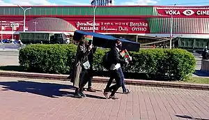 On 16 March, the President of Belarus, Alexander Lukashenko, dismissed the threat of coronavirus and encouraged working in fields and driving tractors as a way of overcoming the pandemic: "You just have to work, especially now, in a village [...] there, the tractor will heal everyone. The fields heal everyone."[356] In his further comments on the pandemic, the Belarusian leader referred to it as "psychosis", and on 28 March he played a game of hockey, later stating in an interview "it is better to die on our feet, than live on your knees [...] sport, especially on ice, is better than any antiviral medication, it is the real thing".[357][358] Prior to that, in an official meeting, Lukashenko proposed "poisoning" the coronavirus with vodka, as well as attending banyas as the best cures for the disease.[359]