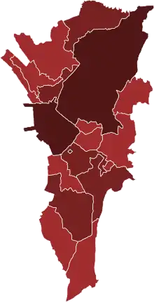 ![]() Confirmed cases in Metro Manila by city and municipality (as of August 25)[note 1]