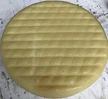The cheeses are cylindrical in shape and up to 1 kilogram (2.2 lb) weight.[1] The period of ripening is brief and the soft, yellow rind surrounds a white or yellowish body which is soft in texture and mild in flavour. Both artisanal and industrial production are common.[1]