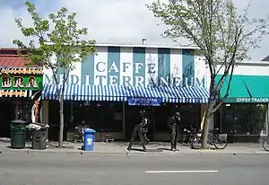 Caffè Mediterraneum, often referred to as Caffè Med or simply the Med, was a café located on Telegraph Avenue in Berkeley, California, US, near the University of California, Berkeley.[1] The Med was a landmark of Telegraph Avenue history, "listed for years in European guidebooks as 'the gathering place for 1960s radicals who created People's Park'"[2] and as of 2009 described in Fodor's guidebook as "a relic of 1960s-era café culture".[3] It was located at 2475 Telegraph Avenue, between Dwight Way and Haste Street.