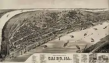 The first municipal charter for Cairo and for the Bank of Cairo were issued in 1818, but without any settlement and without any depositors.[5] A second and successful effort to establish a town was made by the Cairo City and Canal Company in 1836–37, with a large levee built to encircle the site.[5] However, this effort collapsed in 1840, with few settlers remaining.[5]