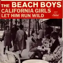 On July 5, 1965, "California Girls" was released as the leading track on side two of the Beach Boys' album Summer Days (And Summer Nights!!).[30] On July 12, it was issued as a single backed with "Let Him Run Wild". It debuted on the Billboard Top 40 chart at number 28, and at the end of August peaked at number 3. In the UK, the single was released that month. In September, it peaked at number 28 in the Netherlands.[31] In October, it peaked at number 26 in the UK, 30 in Germany and 6 in Sweden.[32]