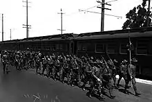 Troops of the 160th Infantry Regiment of the California National Guard arriving in Los Angeles, August 17, 1924