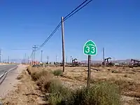 As of 2020, Caltrans has neither posted exit numbers along the freeway portion of SR 33. nor at the very least list any for SR 33 on its California Numbered Exit Uniform System (Cal-NExUS) web site.[9]
