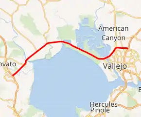 State Route 37 (SR 37) is a state highway in the U.S. state of California that runs 21 miles (34 km) along the northern shore of San Pablo Bay. It is built from U.S. Route 101 in Novato and runs through northeastern Marin County, the southern tip of Sonoma and Solano Counties to Interstate 80 in Vallejo. It serves as a vital connection between the four counties of the North Bay Area, north of San Francisco; Sonoma Raceway and Six Flags Discovery Kingdom are accessible from Route 37. The road is commonly called Highway 37 by local residents.