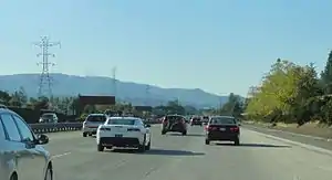 SR 85 begins at an interchange with US 101 and heads due west through San Jose. Near the Westfield Oakridge Mall in San Jose, SR 85 has an interchange with the southern terminus of the SR 87 freeway, which provides easy access to the San Jose International Airport. SR 85 continues west into Los Gatos, where it intersects the SR 17 freeway. SR 85 briefly enters Campbell and reenters San Jose before crossing into Saratoga. It turns northwest and briefly reenters San Jose before entering Cupertino and passing right next to De Anza College. SR 85 then interchanges with I-280 before briefly entering Sunnyvale and Los Altos and then entering Mountain View, where it first intersects SR 237 before terminating at US 101 near the Ames Research Center.[4] HOV lanes run along the entire length of SR 85, requiring at least two people in a car on weekdays from 5-9 AM and 3-7 PM, or a car with an "Access OK" sticker.[5]