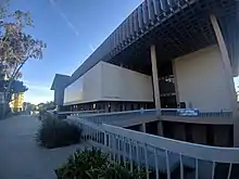 The foundation for what would become CSU Dominguez Hills was built in 1960 when then Governor of California Pat Brown provided state funds to begin development of the campus. It was originally to be located in Palos Verdes, California, and known as South Bay State College. The tentative name was changed to California State College at Palos Verdes in 1962. In 1964, architect A. Quincy Jones successfully designed a master plan for construction.[33][34] As the permanent campus had not yet been constructed, the first classes began to be taught in 1965 at the California Federal Savings Bank in Rolling Hills Estates, California.[35] The college began with an enrollment of approximately 40 students.[36]