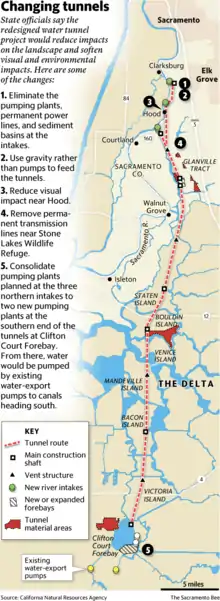 - "CA officials release financing plan for twin tunnels". KCRA. 14 November 2014. Retrieved 31 October 2016.