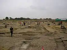 From 1997 to 2014[48][49] Reading University has made sustained and concentrated excavations in Insula IX. Results of the Late Roman,[50] Mid Roman[51] and Late Iron Age phases have been published.[52] In 2013, excavations began in Insula III, investigating a structure identified by the Victorian excavations as a bathhouse.[53] From 2018, the University of Reading has re-explored the previously excavated ruins of the public bathhouse looking at what earlier excavators may have missed.[54]