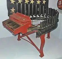 Joshua C. Stoddard of Worcester, Massachusetts patented the calliope on October 9, 1855,[2][3] though his design echos previous concepts, such as an 1832 instrument called a steam trumpet, later known as a train whistle. In 1851, William Hoyt of Dupont, Indiana claimed to have conceived of a device similar to Stoddard's calliope, but he never patented it. Later, an employee of Stoddard's American Music, Arthur S. Denny, attempted to market an "Improved Kalliope" in Europe, but it did not catch on. In 1859, he demonstrated this instrument in Crystal Palace, London. Unlike other calliopes before or since, Denny's Improved Kalliope let the player control the steam pressure, and therefore the volume of the music, while playing.