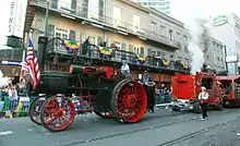 In the age of steam, the steam calliope was particularly used on riverboats and in circuses. In both cases, a steam supply was readily available for other purposes. Riverboats supplied steam from their propulsion boilers. Circus calliopes were sometimes installed in steam-drive carousels, or supplied with steam from a traction engine. The traction engine could also supply electric power for lighting, and tow the calliope in the circus parade, where it traditionally came last. Other circus calliopes were self-contained, mounted on a carved, painted and gilded wagon pulled by horses, but the presence of other steam boilers in the circus meant that fuel and expertise to run the boiler were readily available. Steam instruments often had keyboards made from brass. This was in part to resist the heat and moisture of the steam, but also for the golden shine of the highly polished keys.