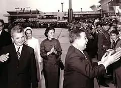 During the early-to-mid-1960s, Prince Norodom Sihanouk's policies had protected his nation from the turmoil that engulfed Laos and South Vietnam.[12] Neither the People's Republic of China (PRC) nor North Vietnam disputed Sihanouk's claim to represent "progressive" political policies and the leadership of the prince's domestic leftist opposition, the Pracheachon Party, had been integrated into the government.[13] On 3 May 1965, Sihanouk broke diplomatic relations with the U.S., ended the flow of American aid, and turned to the PRC and the Soviet Union for economic and military assistance.[13]