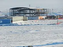 Cambridge Bay was chosen after a feasibility study that also included Pond Inlet and Resolute as potential locations.[44] Prime Minister Harper announced that, starting in 2012, the Government of Canada would spend $142.4 million over a six-year period to build, equip and provision the station. Additionally, again starting in 2012 and spread over six years, the government would provide $46.2 million for the CHARS Science and Technology Program.[45] The prime minister stated that to provide for the continuing research and operations $26.5 million per year, beginning in 2018-19, would be made available.[46] It is expected that the station will provide 35 to 50 jobs. These jobs, which will be full-time, part-time and seasonal, will start in 2017 and run the Science and Technology Program as well as provide the day-to-day operations of the station. In addition it is expected that 150 jobs will be created during construction for local and other people throughout the north. However, some of these jobs will require the hiring of specialised people from southern locales.[47] Construction began in August 2014.[48]