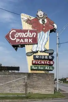 Camden Park is a twenty-six acre amusement park located near Huntington, West Virginia. Established in 1903 as a picnic spot by the Camden Interstate Railway Company, it is one of only thirteen trolley parks that remain open in the United States. Whereas most trolley parks were located at the end of trolley lines, Camden Park is unusual in that it was built where riders traveling between Huntington and nearby cities would stop to change lines. Not long after opening, the park soon gained a carousel and other roadside attractions. Camden Park is West Virginia's only amusement park. The park is home to more than thirty rides and attractions, including a full-size traditional wooden roller coaster, the Big Dipper, and several other vintage rides.