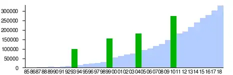![]() Green bars are holy years |