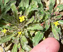 Camissoniopsis micrantha is a species of flowering plant in the evening primrose family known by the common name miniature suncup. It is endemic to California, where it grows along the coast and in the coastal mountains as far north as the San Francisco Bay Area, as well as in the Central Valley. It grows in sandy areas in a number of habitats, from beaches to inland slopes. This is a small, hairy annual herb producing a basal rosette of leaves. The stem varies in morphology, approaching half a meter in erect height or quite short and flat, with or without branching. The larger leaves are located in the basal rosette; those on the stem are narrow and shorter. The inflorescence produces bears a number of flowers with petals less than 5 millimeters long. They are bright yellow and dry to a reddish color as they close. If the inflorescence is located on an erect stem it bends the stem over with its weight. The flowers self-pollinate. The fruit is a cylindrical capsule 1 to 2 centimeters long.