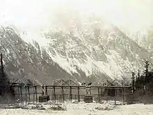 This is the smallest of the campgrounds on the American side of the trail. It is located next to a sandbar in the Taiya River and consists of a canvas warming and cooking shelter, a small number of campsites, and a bear pole. Pleasant Camp usually serves as a spillover campsite if Sheep Camp is full. There is a sign near the cooking shelter notifying backpackers whether Sheep Camp is at capacity or can still take backpackers.