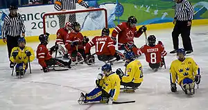 The Canada men's national ice sledge hockey team represents Canada at international competition. The team has been overseen since 2003 by Hockey Canada, a member of the International Ice Hockey Federation. From 1993 until 2003, the team was an associate member of Hockey Canada.[2]