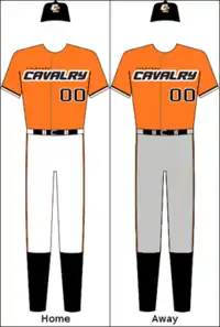 The home white uniform had CAVALRY spelled across the chest while an orange alternate used the team's nickname, CAVS. A third jersey would later be unveiled: a black top with "The Capital" written in orange script. The new hats included a black, orange, and white colored panel hat with the primary horse logo on the front and an all orange hat with a single sideways horseshoe from the secondary logo.