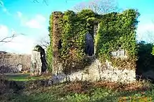 Candleston Castle, a fortified manor, was built in the 14th century. An enclosure, in the shape of a D, surrounded the structure.[5][6] The late-medieval manor may have been constructed on the site of a previous building, based upon the presence of remnants of an earlier wall.[2] The castle may have been built by Robert de Canteilupe III, who owned one ploughland at Candleston in 1320 according to the Despenser Survey of Glamorgan of that year.[7][nb 1] Robert III, who is not recorded after 1320, may have been succeeded by John de Cantilupe, who may have been the Abbot of Margam in 1315.[7][nb 2] Robert de Cantilupe III's daughter Joan, heiress of Candleston, married Sir William Horton of Tregwynt, Pembrokeshire.[7]