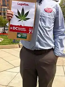 Initiative 71 was a Washington, D.C. voter-approved ballot initiative that legalized the recreational use of cannabis. The short title of the initiative was Legalization of Possession of Minimal Amounts of Marijuana for Personal Use Act of 2014.[16] The measure was approved by 64.87% of voters on November 4, 2014 and went into full effect February 26, 2015.[17][18]