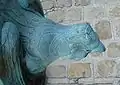 The back part consists of, sometimes, an inscription showing the weight of the cannonball (for example a "12" for a 12-pounder), followed by a Latin inscription "Nec pluribus impar", meaning that the King is "Not unequal to many (suns)". This is followed by the royal crest of the Bourbon dynasty. At the bottom of the gun, the location and date of manufacture are inscribed, and finally the name and title of the founder (in the example "Fondu par J. Martiz, Commissaire des Fontes").[2] The breech is decorated with an animal face showing the rating of the gun ("Bird" or "Rooster" for a 12-pounder).