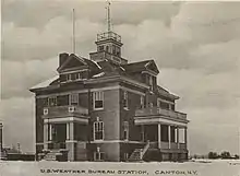 Humans have been present in this region of New York since the Paleo-Indian period which is from about 15,000-7,000 BC. Iroquoian peoples arrived between 1,200 and 4,000 years ago, and both the Mohawk and the Oneida consider the Adirondacks to be part of their territory.[6] When white settlers began to arrive, the area was part of the Mohawk Nation, which was part of the Iroquois Confederacy. The Mohawks are known as Kanienkehaka, or "the people of the flint," and they were considered the keepers of the Eastern door for this edge of Haudenosaunee territory.[7] The first settler arrived in 1800. The town was organized/incorporated on May 14, 1805 from part of the town of Lisbon. The name Canton was supposedly selected due to contemporary interests in the China trade. Canton was one of the original ten towns of the county. In 1845, the community of Canton was incorporated as a village. The Brick Chapel Church and Cemetery was listed on the National Register of Historic Places in 2005.[8]