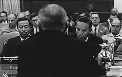 Viên refused to participate in the 1963 coup against South Vietnamese President Ngô Đình Diệm. He was one of several military leaders who were unaware of the coup.[18][19] When called to a lunchtime meeting with other senior officers and informed of the coup d'état, he reportedly broke down in tears and resigned, refusing to go along with the putsch.[14][15][18][20][21] Vien was not aware of the plot, and the generals had discussed whether to assassinate him during their planning phase because they knew he was a Diem admirer.[22] His loyalty to the conspirators now suspect,[18] a rifle was thrust into his back and he was moments from being killed.[3][14][15] But Major General Tôn Thất Đính had spoken with General Dương Văn Minh during the planning for the coup and convinced Minh to save Viên's life.[3][14][15][23] Dinh played mahjong with Vien's wife, and had convinced Minh that Vien would not oppose the coup.[22] Vien had planned with Diem to allow the president to take refuge at his home in the event of a coup, but the offer could not be taken up because the rebels surrounded Vien's house after taking him into custody.[22] Another account has him accepting the coup after being informed of it.[19] General Lâm Quang Thi later recalled that Viên was a Diem loyalist, but remained neutral during the coup.[11] Viên was briefly imprisoned and stripped of his command, but reinstated a month later.[1][11][14][15]