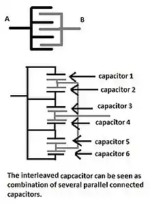 where is the capacitance for a single plate and is the number of interleaved plates.
