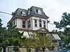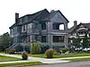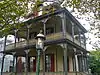 Several fires destroyed portions of the town and the mostly wooden, frame-built houses. The fire of 1878 destroyed about half the town, but many buildings were quickly rebuilt. This fire gave a particular boost to Button's career, and many of the local builders appear to have copied Button's style at this time.[5] These newer buildings were built with gingerbread trim, gables and turrets.[11][12]