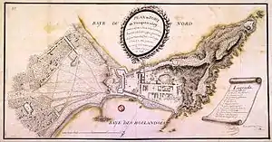 ![]() A 1782 French map of Fort Fredrick, made after Suffren recaptured the port | |||||||