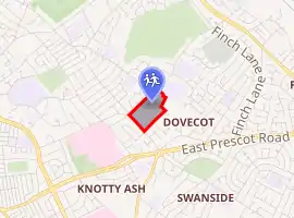 It is situated just north of the A57 in Mill Yard, east of the Alder Hey Children's Hospital. It is next-door to Broughton Hall High School, an all-girls Catholic school.