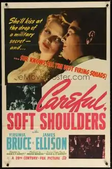 Careful, Soft Shoulders is a 1942 American comedy film written and directed by Oliver H.P. Garrett. The film has stars such as Virginia Bruce, James Ellison, Aubrey Mather, Sheila Ryan, Ralph Byrd and Sigfrid Tor. The film was released on September 18, 1942, by 20th Century Fox.[1][2][3]