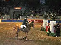 ![]() Kevin Babington and Carling King show jumping indoors | |