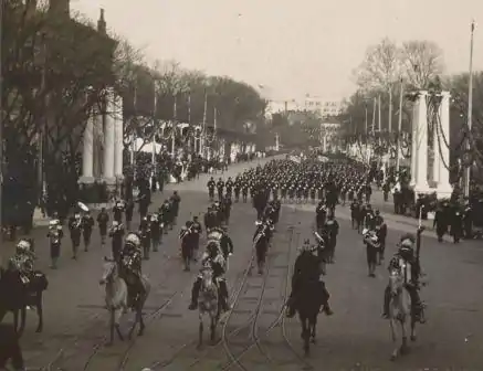 The Carlisle Indian Band earned an international reputation under a talented Oneida musician, Dennison Wheelock, who became noted as its leader, composer and compiler of modified Native airs.[69] Many students studied classical musical instruments. The Carlisle Indian Band performed at world fairs, expositions and every at national presidential inaugural celebration until the school closed. Luther Standing Bear was a bugler for military calls and educated as a classical musician. On May 24, 1883, Luther Standing Bear led the Carlisle Indian band of brass instruments as the first band to cross the Brooklyn Bridge on its grand opening.[70]