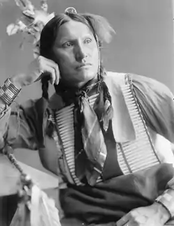 Oglala Lakota Chief American Horse was one of the earliest advocates of 'western' (Euro-immigrant) education for Native Americans.[32] While recruiting at Pine Ridge Reservation, Captain Pratt met strong opposition from Red Cloud, who distrusted white education yet had no school-age children himself. American Horse "took a lively interest" in what he had to say. He was a tribal leader and head of a large household with at least ten children. He believed that his children would have to deal with whites, and perhaps live with them, whether they liked it or not. He decided to send two sons and a daughter for the first class at Carlisle.[33]