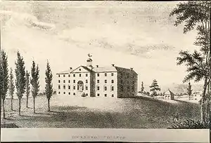 Carlisle was also home to Dickinson College, less than two miles from the Carlisle Indian School, America's 16th oldest college.[43] Dickinson College and the Carlisle Indian School collaboration began when Dr. James Andrew McCauley, President of Dickinson College, led the first worship service at the Indian School in 1879. It was Mrs. Pratt who had initiated the contact between the Indian School and Dickinson. Upon Pratt's absence one Sunday, Mrs. Pratt wrote to President McCauley and requested his aid as a minister which he graciously accepted. The relationship did not stop there with Richard Pratt noting that, "from that time forward Dr. McCauley became an advisor and most valued friend to the school.".[44] The collaborative effort between Dickinson College and the Carlisle Indian School lasted almost four decades, from the opening day to the closing of the school. Dr. McCauley helped Pratt to develop a Board of Trustees and a Board of Visitors composed of different heads of leading national educational institutions and wealthy donors. Dickinson College professors served as chaplains and special faculty to the Indian School,[45] and college students volunteered services, observed teaching methods and participated in events.[46] Dickinson College also provided Carlisle Indian School students with access to the Dickinson Preparatory School ("Conway Hall") and college level education.[47] Thomas Marshall was one of the first Native American students at Dickinson. Carlisle is also home to the Dickinson School of Law, (1834) - now part of The Pennsylvania State University, and in the early 1900s a few Carlisle Indian School graduates attended the law school: Albert A. Exendine, Ernest Robitaille, Hastings M. Robertson, Victor M. Kelley, and William J. Gardner.