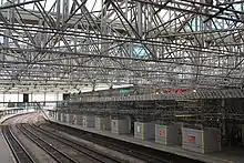 During November 2015, work commenced upon the repair and refurbishment of the station's roof, as well as the rebuilding of all eight platforms under a £14.7 million scheme that was managed and carried out by national rail infrastructure management company Network Rail.[5] This programme was planned by global design consulting firm Arcadis in close cooperation with both Historic England and Carlisle City Council; while the renovated roof was designed to incorporate modern elements and contemporary construction techniques, significant attention was reportedly paid to maintaining its historical aesthetic. The new roof is primarily composed of ethylene tetrafluoroethylene (EFTE) sheeting and aluminium frames, which is claimed to possess a high level of resistance to corrosion as well as retaining considerable strength and being far lighter than conventional glass panes; other benefits include the roof being shatter-proof and self-cleaning.[4] Construction company Galliford Try served as the principal contractor performing the roof replacement, while Vector Foiltec manufactured and fitted the EFTE sheets. It was also decided to repaint the metalwork of the roof, which was not originally included in the programme's scope.[4][6]