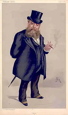 Carlo Pellegrini (25 March 1839 – 22 January 1889), who did much of his work under the pseudonym of Ape, was an artist who served from 1869 to 1889 as a caricaturist for Vanity Fair magazine, a leading journal of London society. He was born in Capua, then in the Kingdom of the Two Sicilies. His father came from an ancient land-owning family, while his mother was allegedly descended from the Medici. His work for the magazine made his reputation and he became its most influential artist.