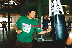 Carlos Roque Monzón (Santa Fe, Argentina; 7 August 1942 – Santa Fe, Argentina; 8 January 1995), nicknamed Escopeta (Shotgun in Spanish), was an Argentine professional boxer who held the undisputed world middleweight championship for 7 years.[1] He successfully defended his title 14 times[2][3][4] against 11 different fighters[5][6] and is widely regarded as not only one of the best middleweights in history but also one of the greatest boxers of all time pound-for-pound. Known for his speed, punching power and relentless work rate, Monzon ended his career with a record of 87-3-9 with 59 knockouts, each one of his losses were early in his career and were avenged. Inducted into the International Boxing Hall of Fame in 1990, he was chosen by The Ring magazine in 2002 as the 11th greatest fighter of the last 80 years[7] and voted him as the best middleweight title holders of the last 50 years in 2011.[8] As of January 2018, Monzón holds the 2nd longest unified championship reign in middleweight history at 9 consecutive defenses.