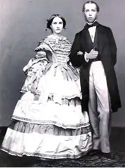 Carlota tried to take her Imperial duties seriously and even undertook a tour of the remote Yucatán frontier in November of 1865, visiting the ruins of Uxmal. While there she wrote a series of letters and reports on the peninsula that are now archived in the National Archives of Austria and the Library of Congress.[3] Carlota and Maximilian had no children, but in 1865 the Imperial couple adopted Agustín de Iturbide y Green and Salvador de Iturbide y de Marzán—grandsons of Agustín de Iturbide y Arámburu, an earlier emperor of Mexico (r. 1822–23). They gave two-year-old Agustín the title of "His Highness, The Prince of Iturbide"—similar imperial titles were accorded to various members of the child's extended family—but never intended to give him the throne, because he was not of royal blood.[4] Maximilian explained himself that it was all a charade to get his brother Archduke Karl Ludwig of Austria to give him one of his sons as heir.[4]
