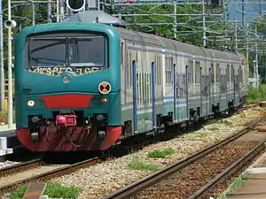 The train was reported to have run away from Paderno d'Adda without crew, and with a passenger detected after the derailment.[1] The train was to operate a Paderno d'Adda-Milan service about 25 minutes after the start of the runaway from Paderno d'Adda, which took place about 15 minutes after its arrival from Milan;[2] it included a Class E.464 locomotive (in the rear position), six carriages and a control car.