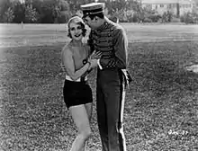 Although Lombard initially had reservations about performing in slapstick comedies, the actress joined his company as one of the "Sennett Bathing Beauties".[25] She appeared in 18 short films between September 1927 and March 1929,[26] and greatly enjoyed her time at the studio.[27] It gave Lombard her first experiences in comedy and provided valuable training for her future work in the genre.[28] In 1940, she called her Sennett years "the turning point of [my] acting career."[29]